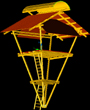 The Costa Rica hooch design was conceived and modeled in 3D CAD in the studio of Darrel Deboer in two weeks of February, 2006. The all bamboo concept, and remote site (no electricity) was motivation for a variation from the pre-fabricated, plywood hip roof. The new gable design allowed galvanized roofing to be applied with no cutting. The modified, dutch hip roof was achieved with custom made spanish tile bamboo end panels, pre designed and fabricated by Martin Coto- the premier bamboo artisan of Costa Rica.