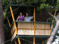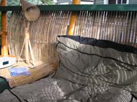 A July, 2006 hooch retrofit of the previous bamboo hooch with certified sustainably harvested Douglas fir poles was completed in two weeks, with minimal hassle. In fact, the whole experience was totally enjoyable to all involved. Sid & Eileen are great hosts, and happy hooch dwellers.